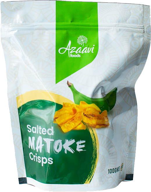 Salted Matoke Crisps-100gms Matoke Crisps/Green Banana chips are thinly sliced, fried and salted to give it a crunchy and delicious taste. They are light, easy to pack for a good pass time snack. They are filling and will keep you full